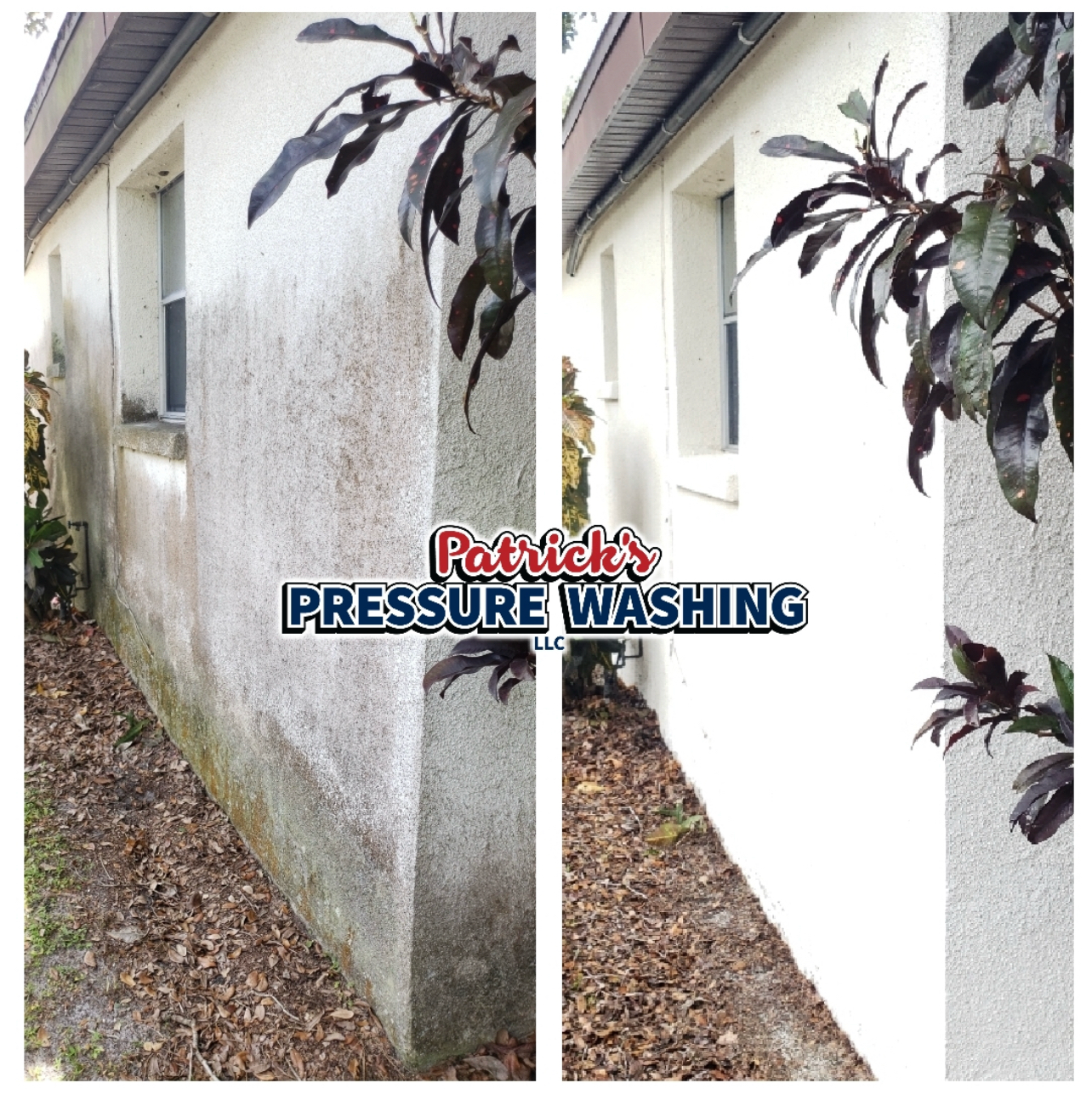 Patrick’s Pressure Washing never uses high pressure in our house washing services to clean exterior surfaces like stucco, brick, vinyl siding, or just about any other surface. Instead we use a Soft Wash method that safely returns your building’s exterior to its original like-new condition.